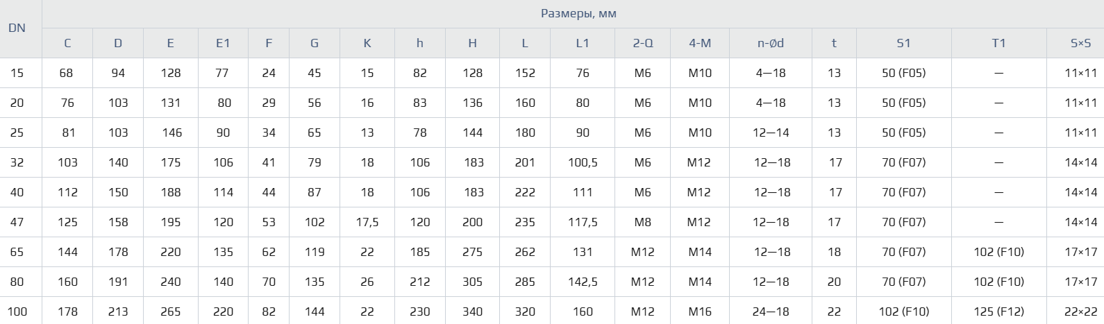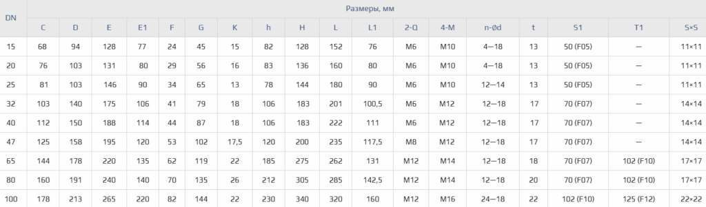 - Модели -065, -080, -100 поставляются в сборе с монтажным крепежом и переходником (кроме модели -080)