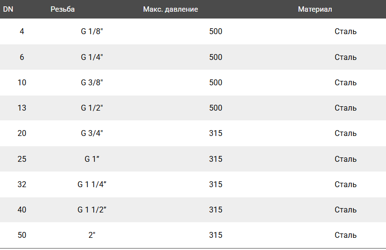 - Проходное сечение: от DN4 до DN25 (1/8" до 2”)